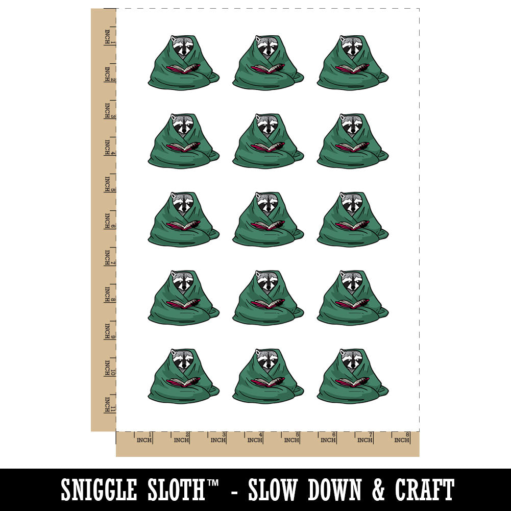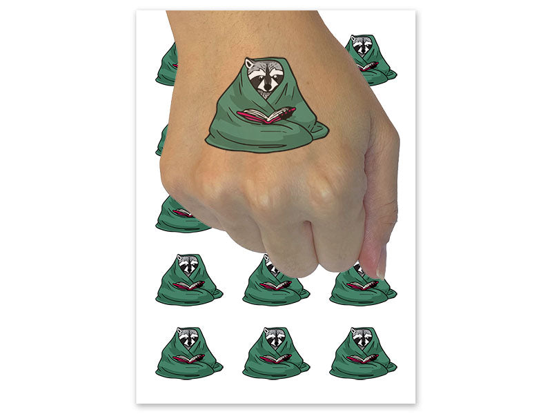 Cozy Raccoon Reading Book In Blanket Temporary Tattoo Water Resistant Fake Body Art Set Collection (1 Sheet)