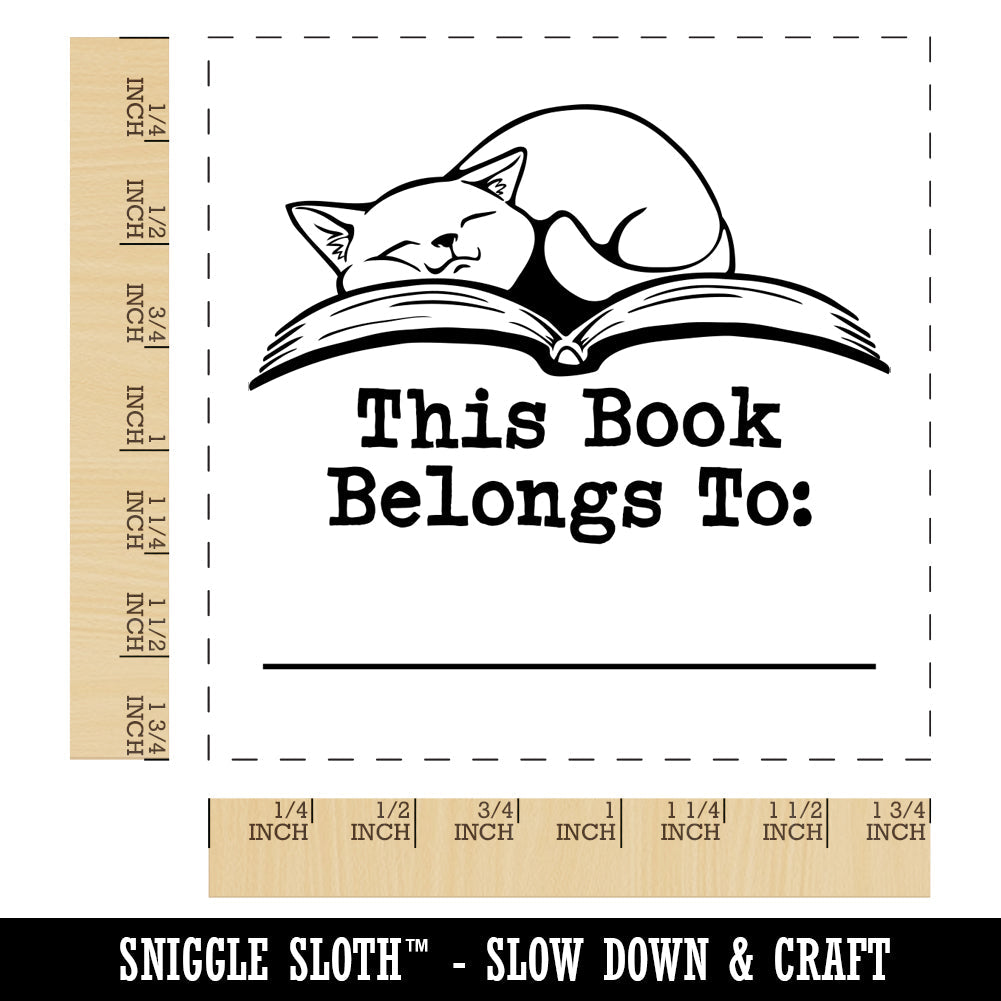 This Book Belongs to Sleepy Cat Square Rubber Stamp for Stamping Crafting