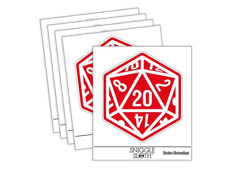 Critical Hit D20 20 Sided Gaming Gamer Dice Role Waterproof Vinyl Phone Tablet Laptop Water Bottle Sticker Set - 5 Pack