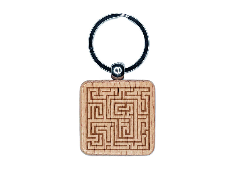 Labyrinth Maze Puzzle Game Engraved Wood Square Keychain Tag Charm