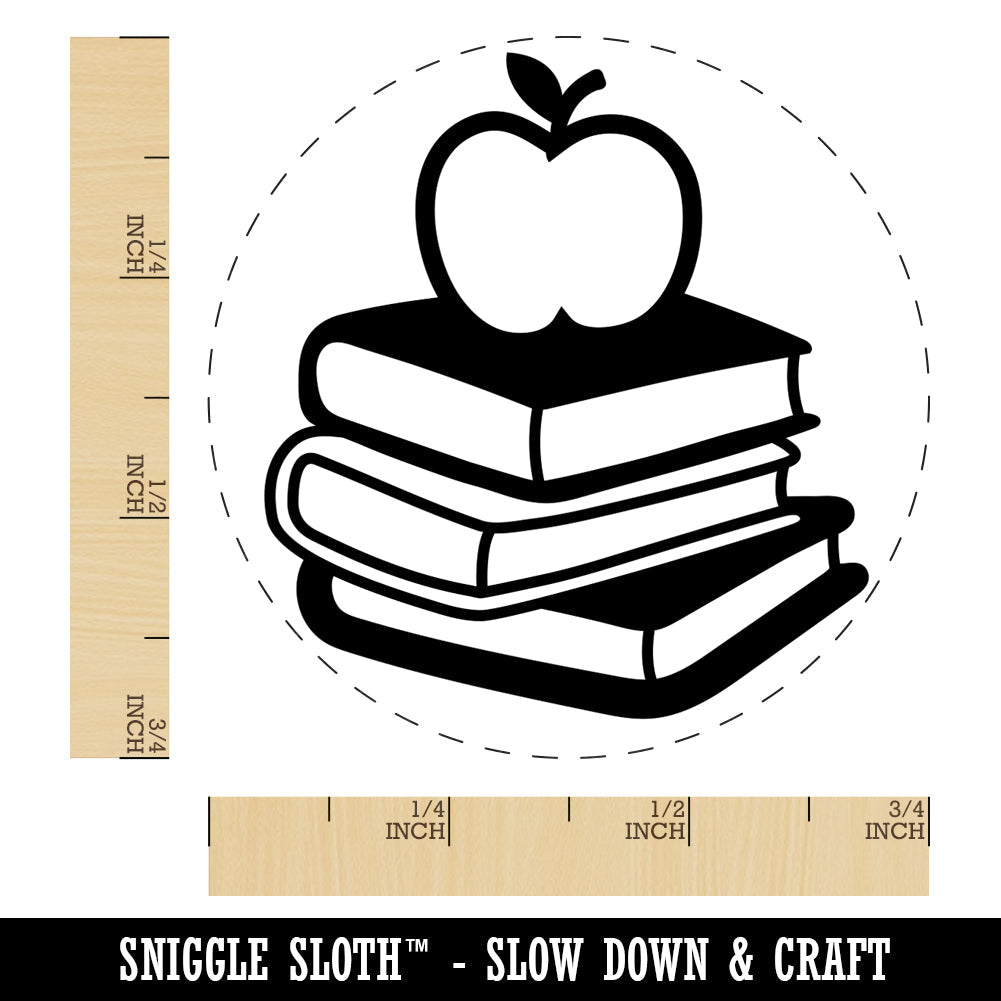 Apple on Stack of Books Reading Library Teacher Rubber Stamp for Stamping Crafting Planners