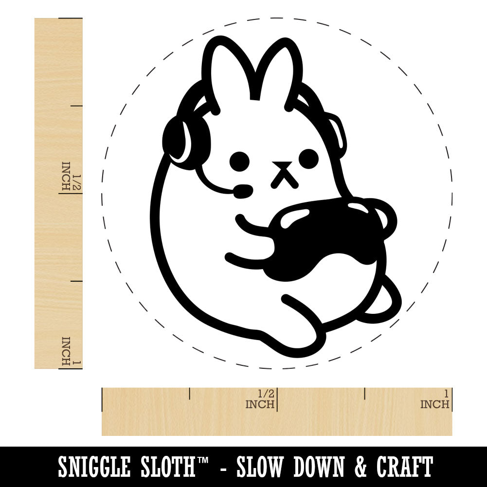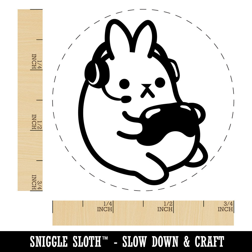 Geek Gamer Bunny Rabbit Playing Console Games Rubber Stamp for Stamping Crafting Planners