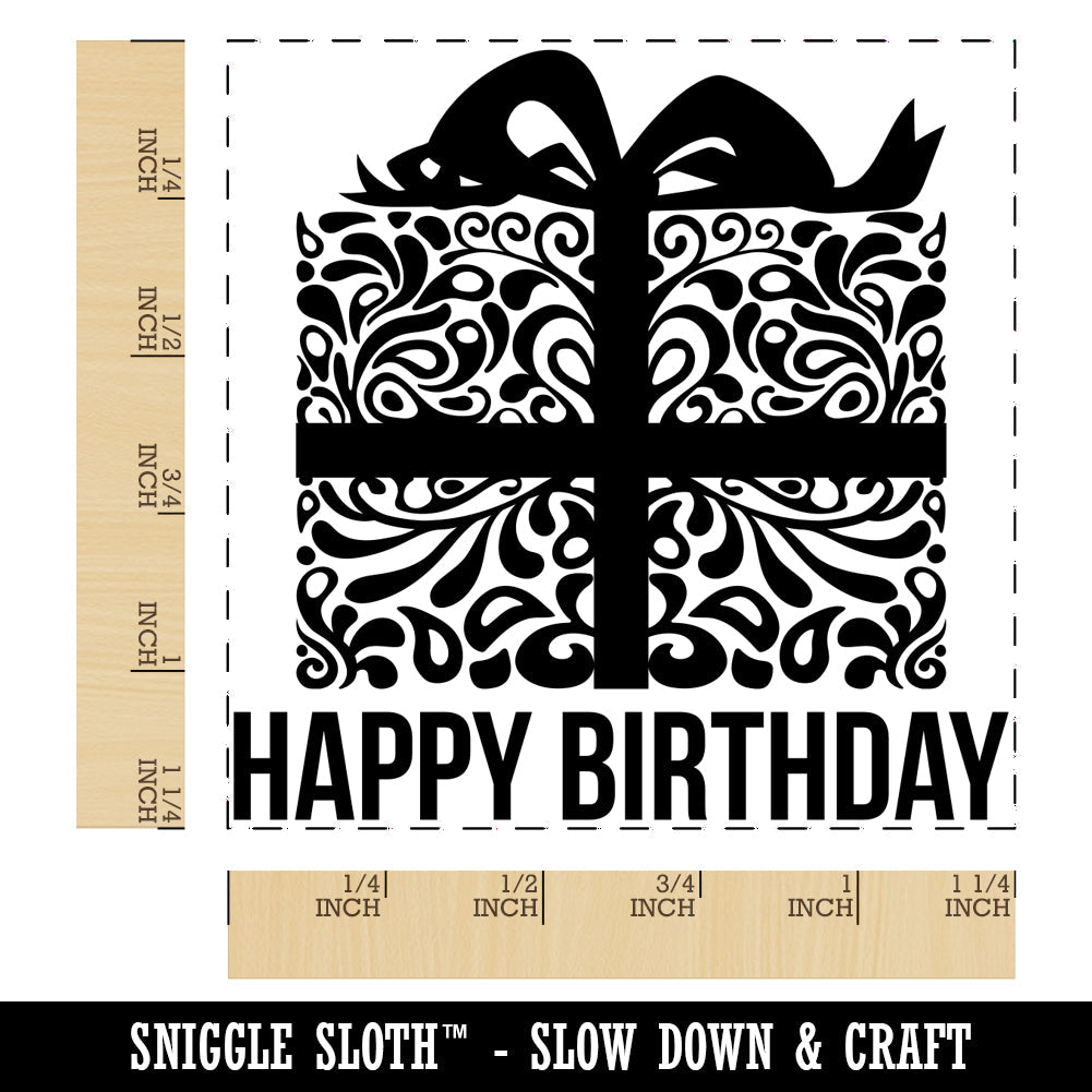 Happy Birthday Elegant Present Square Rubber Stamp for Stamping Crafting