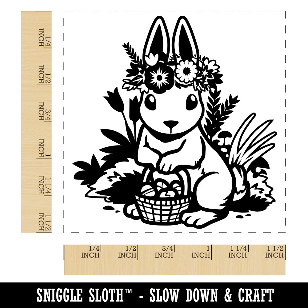 Cute Easter Bunny with Eggs and Flower Crown Self-Inking Rubber Stamp Ink Stamper