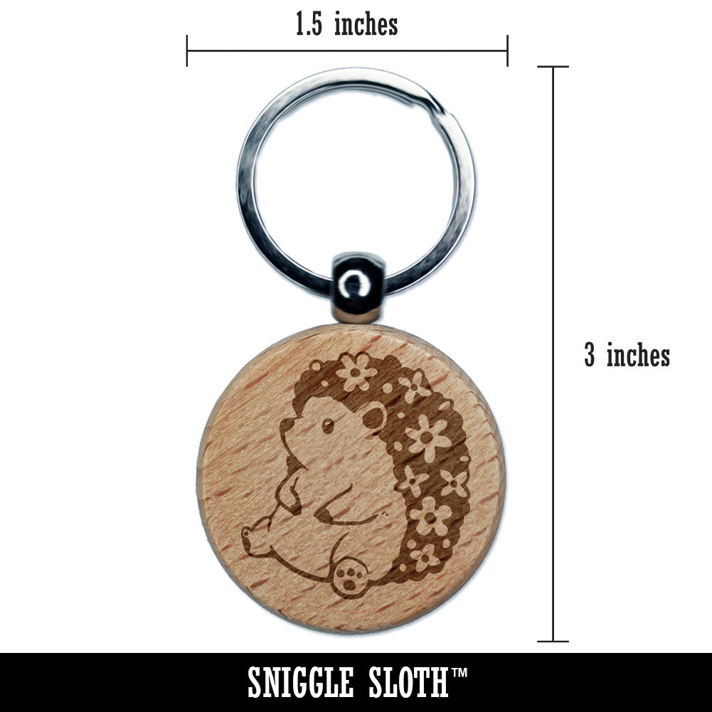 Easter Hedgehog with Flowers in Hair Engraved Wood Round Keychain Tag Charm