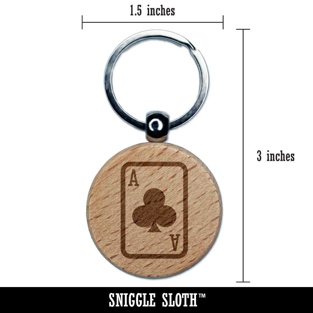 Playing Card Ace of Clubs Engraved Wood Round Keychain Tag Charm