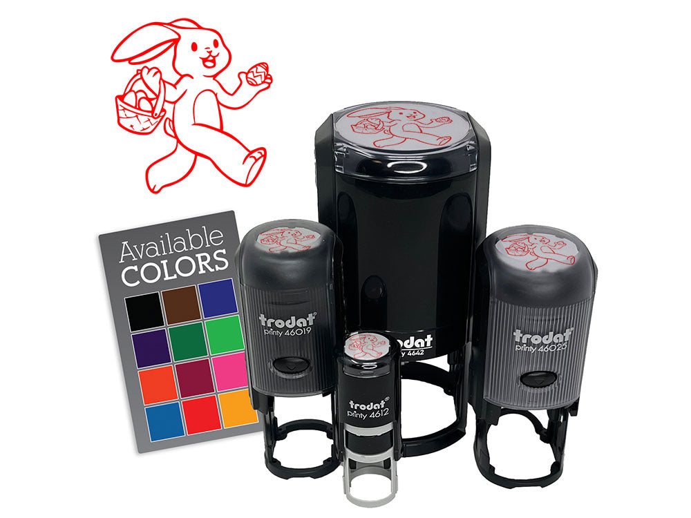 Skipping Easter Bunny Giving Eggs in Basket Self-Inking Rubber Stamp for Stamping Crafting Planners