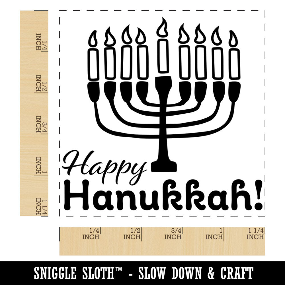Happy Hanukkah with Menorah Square Rubber Stamp for Stamping Crafting