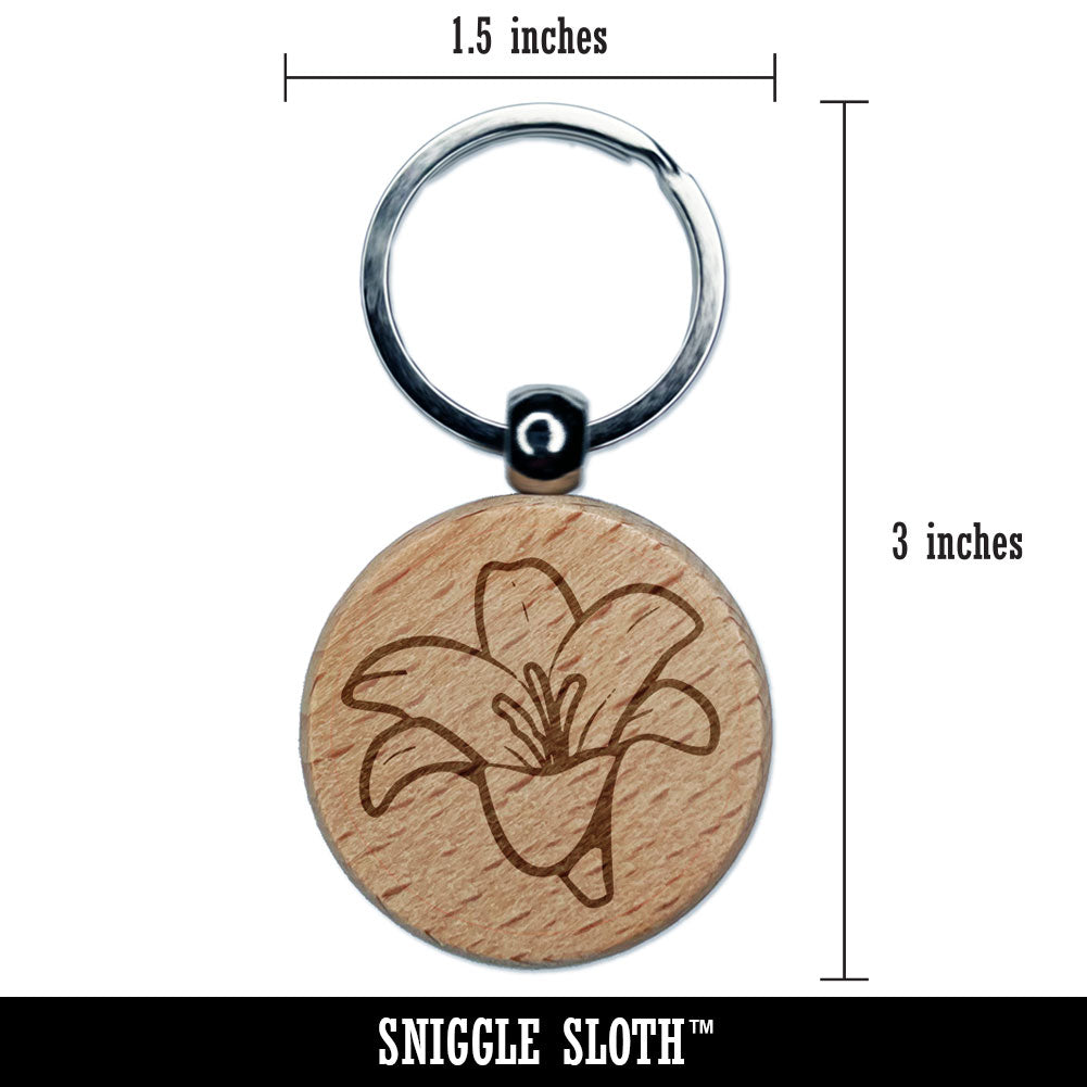 Easter Lily Beautiful Flower Engraved Wood Round Keychain Tag Charm