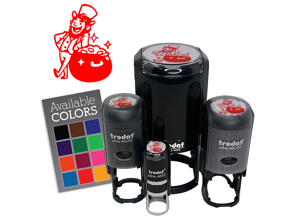 Leprechaun with Pot of Gold Saint Patricks Day Self-Inking Rubber Stamp for Stamping Crafting Planners