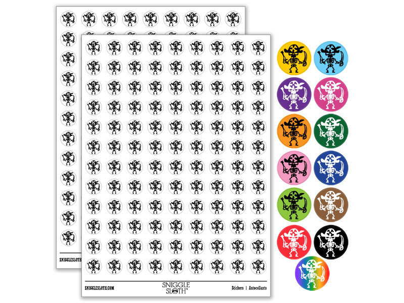 Pirate Skeleton with Gun and Sword Cutlass Bones Round Sticker Pack