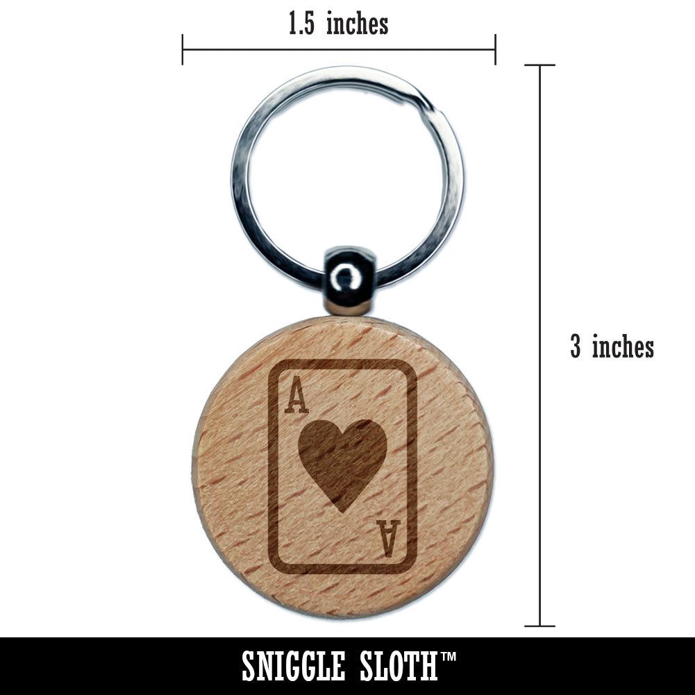 Playing Card Ace of Hearts Engraved Wood Round Keychain Tag Charm
