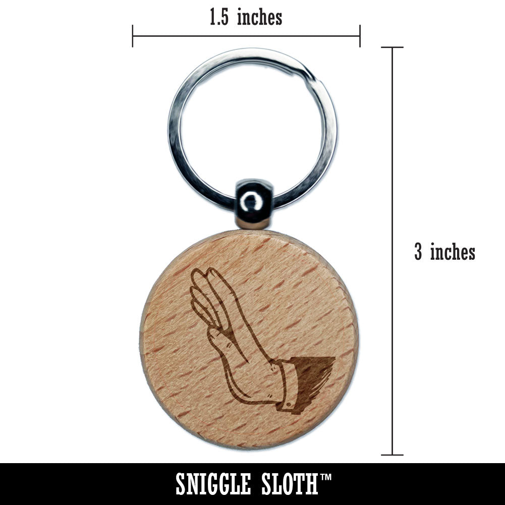 Stop Wait Halt Hand Gesture Engraved Wood Round Keychain Tag Charm
