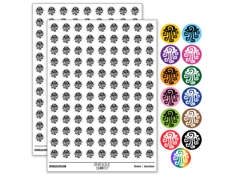 Swirly Stylized Tribal Jellyfish Tentacles Round Sticker Pack