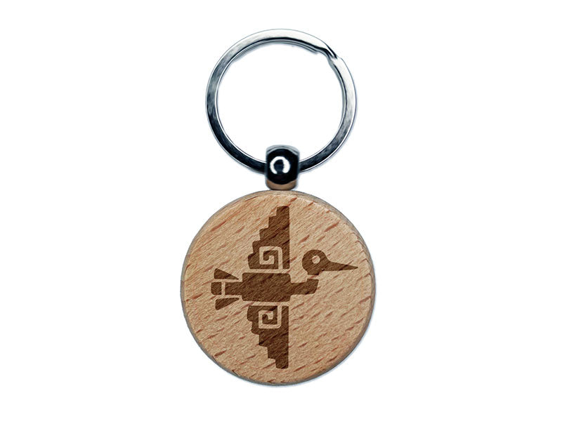 Tribal Southwestern Crane Bird Flying Engraved Wood Round Keychain Tag Charm