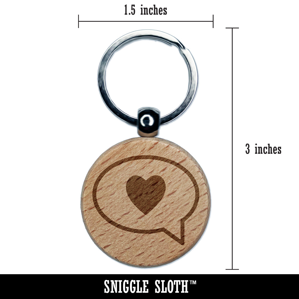 Heart Love in Text Callout Engraved Wood Round Keychain Tag Charm