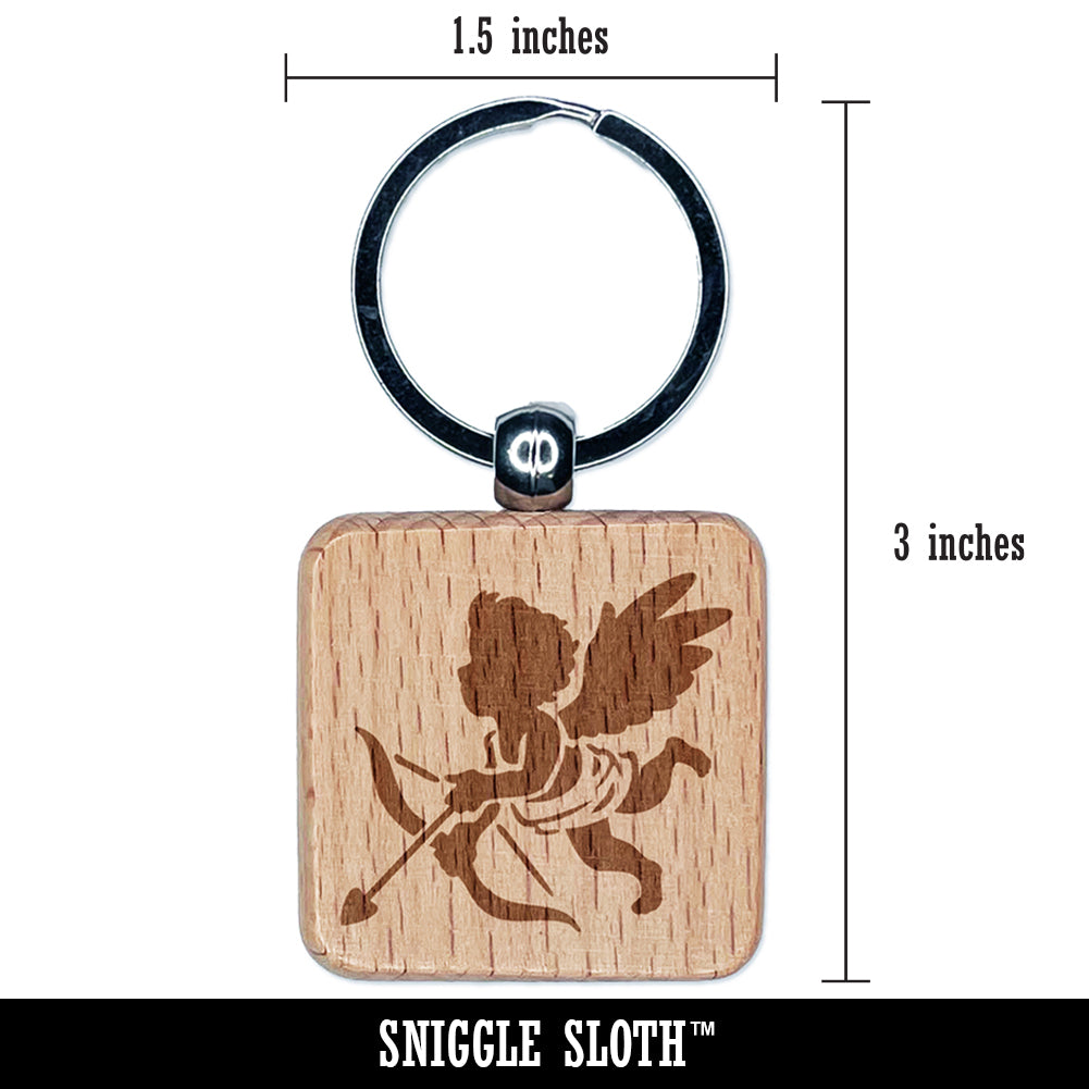 Valentine Cherub Cupid with Bow and Arrow Engraved Wood Square Keychain Tag Charm