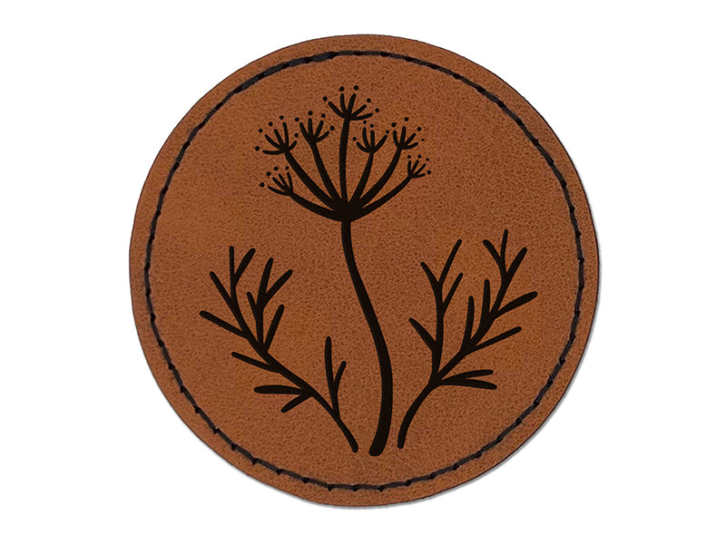 Blooming Dill Weed Plant Round Iron-On Engraved Faux Leather Patch Applique - 2.5"
