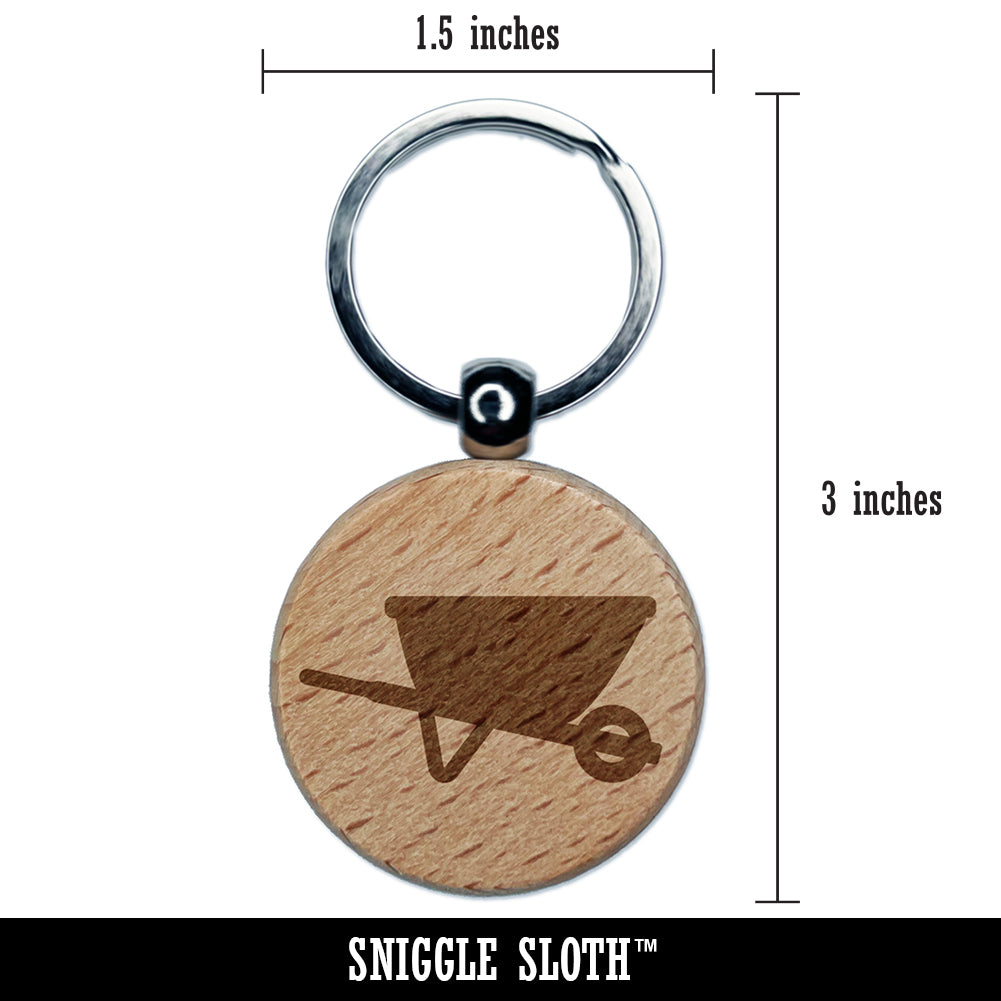 Gardening Wheelbarrow Engraved Wood Round Keychain Tag Charm