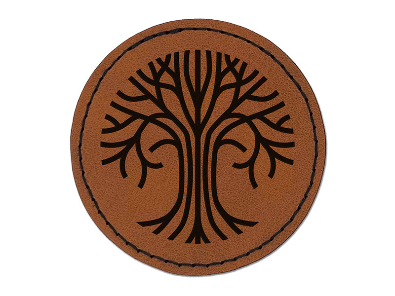 Geometric Lines Tree of Life Round Iron-On Engraved Faux Leather Patch Applique - 2.5"