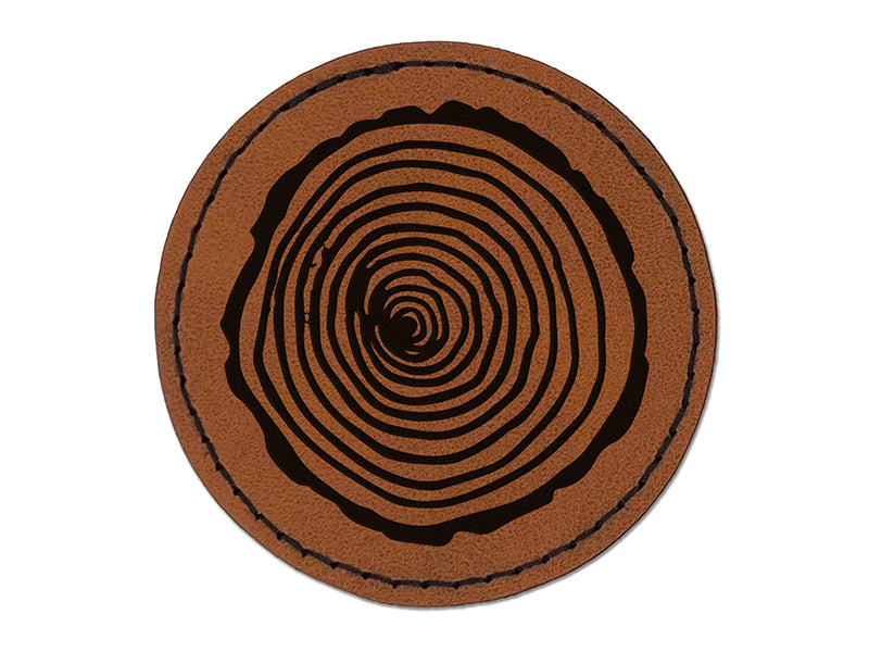 Hand Drawn Tree Rings Doodle Round Iron-On Engraved Faux Leather Patch Applique - 2.5"