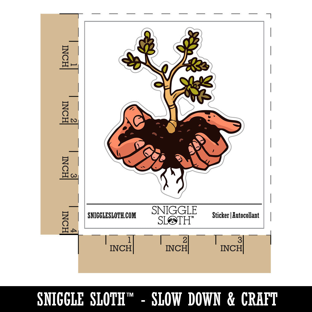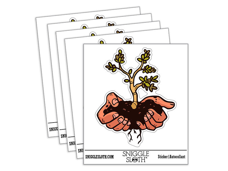 Water Bottle Sticker Set Hands Holding Tree Earth Dirt Planting Garden Cute Waterproof Vinyl Stickers Pack Decal, Skateboard, Laptop, Car, Window, Bumper - 5 Pack