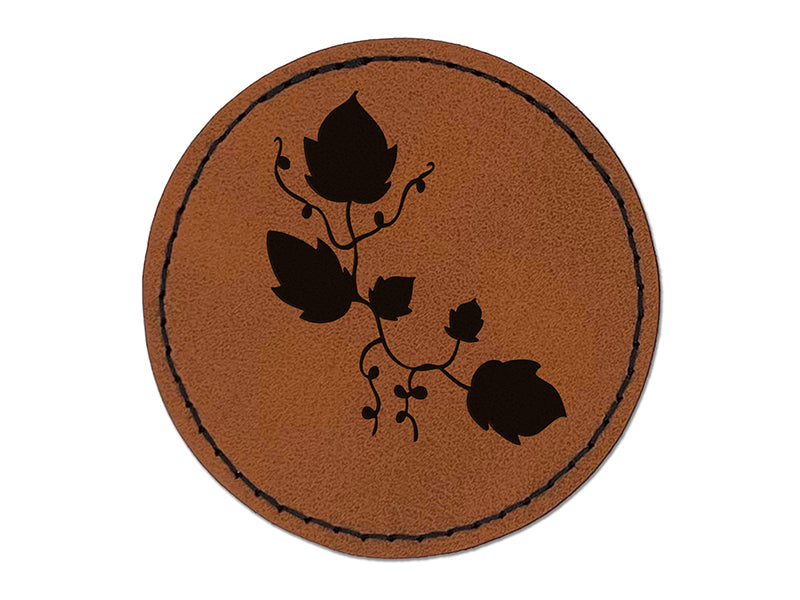 Ivy Vines Solid Round Iron-On Engraved Faux Leather Patch Applique - 2.5"
