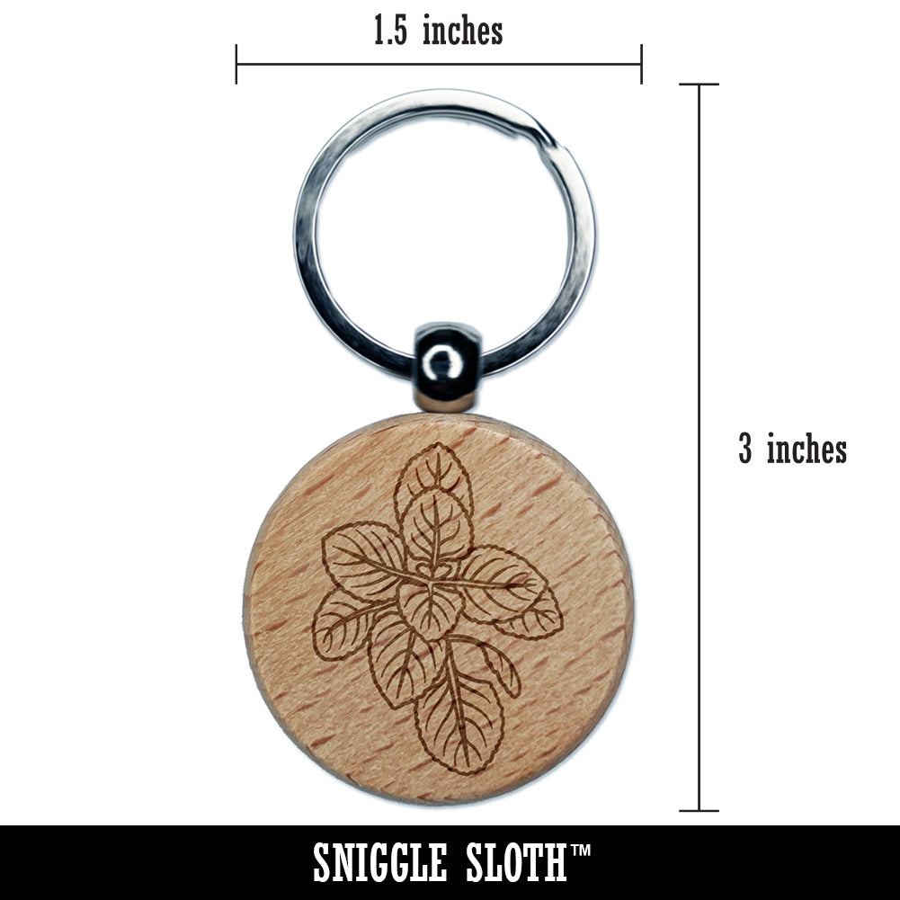 Oregano Herb Plant Engraved Wood Round Keychain Tag Charm