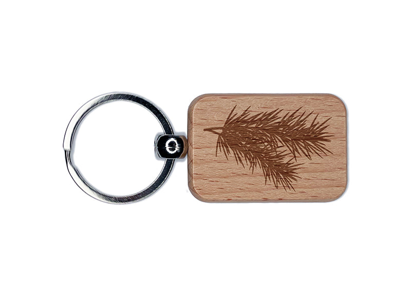 Pine Tree Branch Engraved Wood Rectangle Keychain Tag Charm