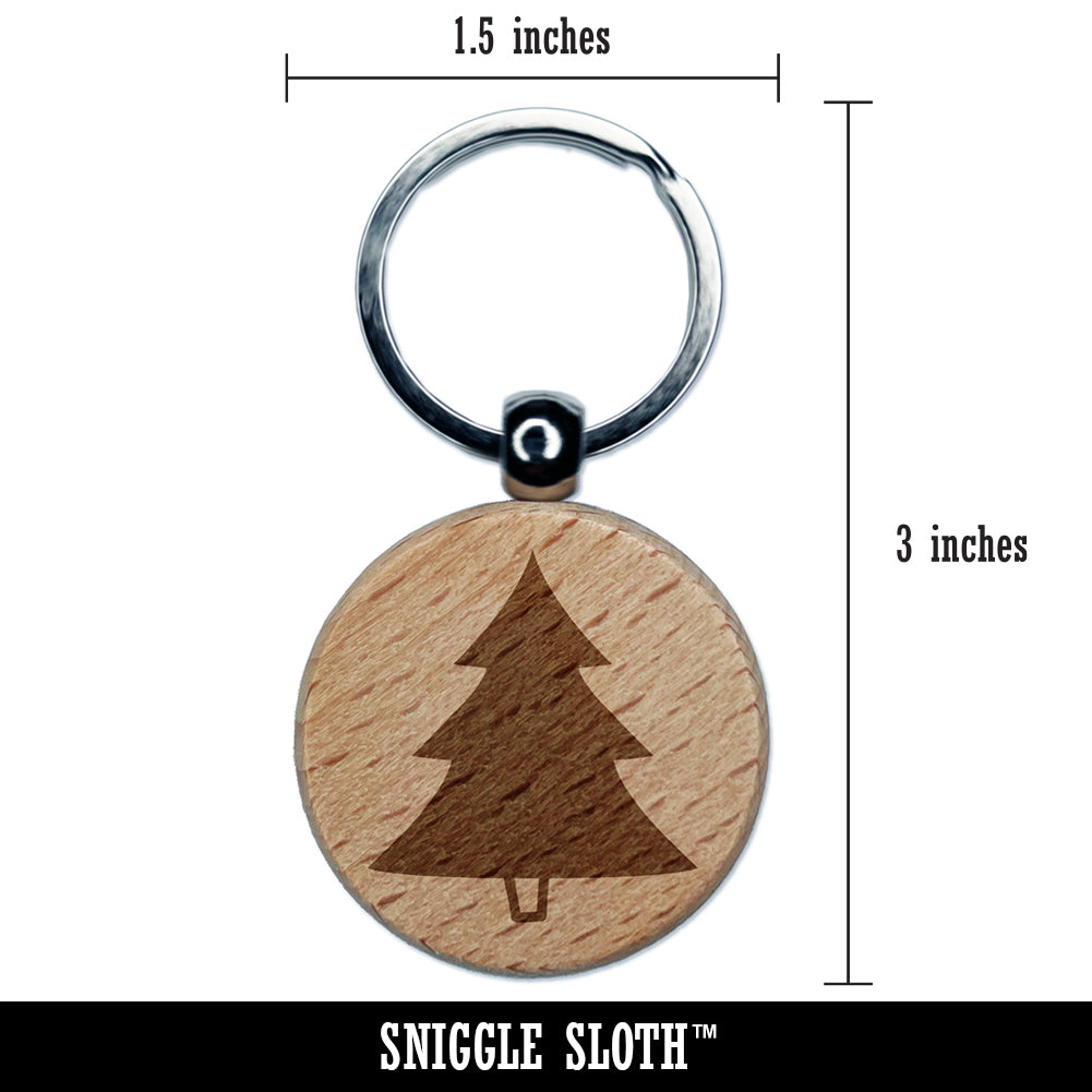 Pine Tree Cartoon Engraved Wood Round Keychain Tag Charm