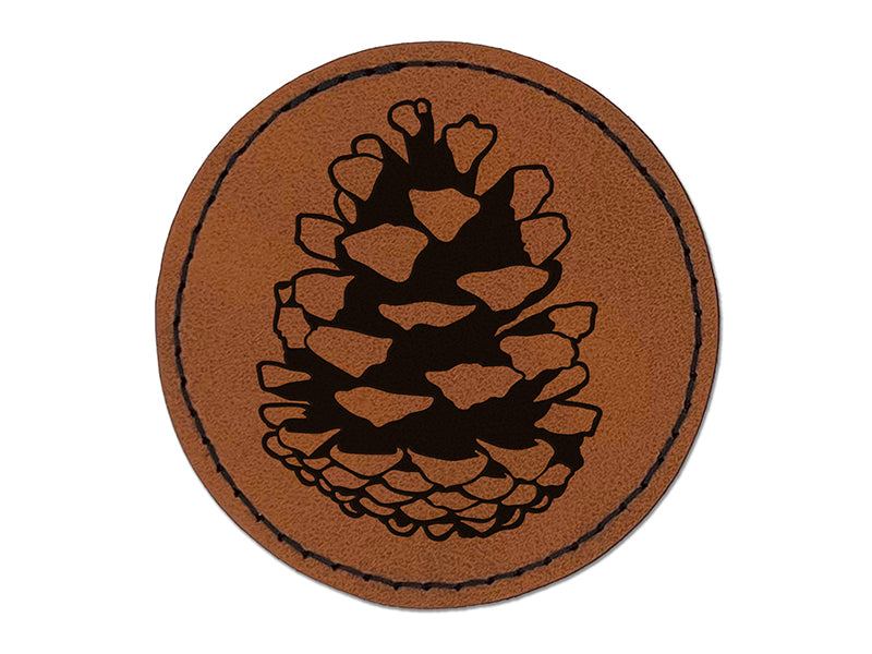 Realistic Pinecone Pine Cone Round Iron-On Engraved Faux Leather Patch Applique - 2.5"
