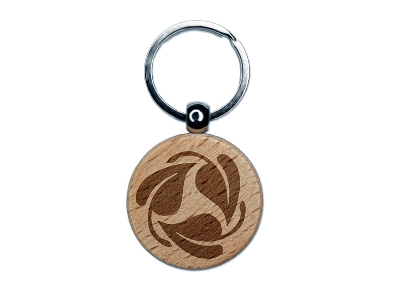 Three Leaves Circle Recycle Pattern Engraved Wood Round Keychain Tag Charm