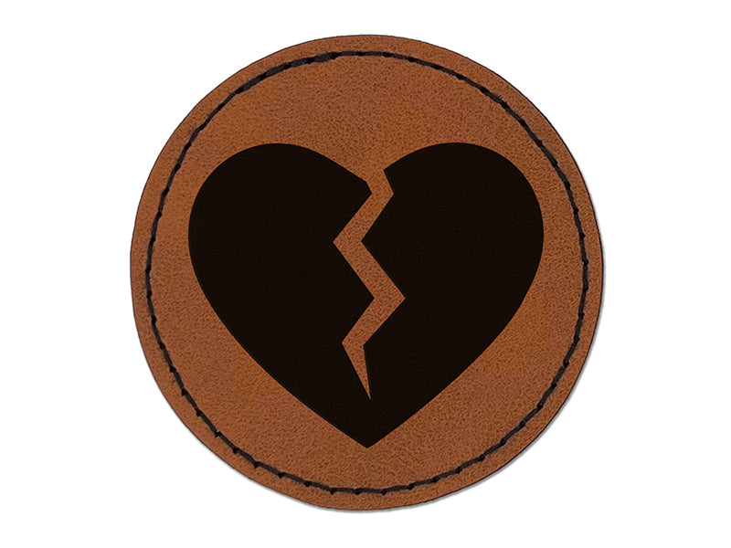 Broken Heart Love Round Iron-On Engraved Faux Leather Patch Applique - 2.5"