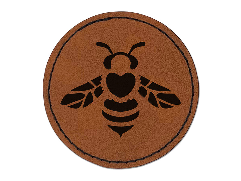 Cute Honey Bumblebee with Heart on Back Round Iron-On Engraved Faux Leather Patch Applique - 2.5"