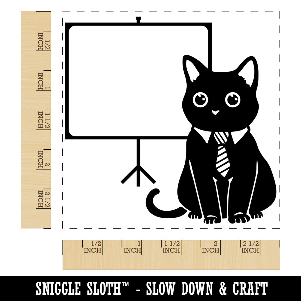 Business Cat with Blank Presentation Board Square Rubber Stamp for Stamping Crafting