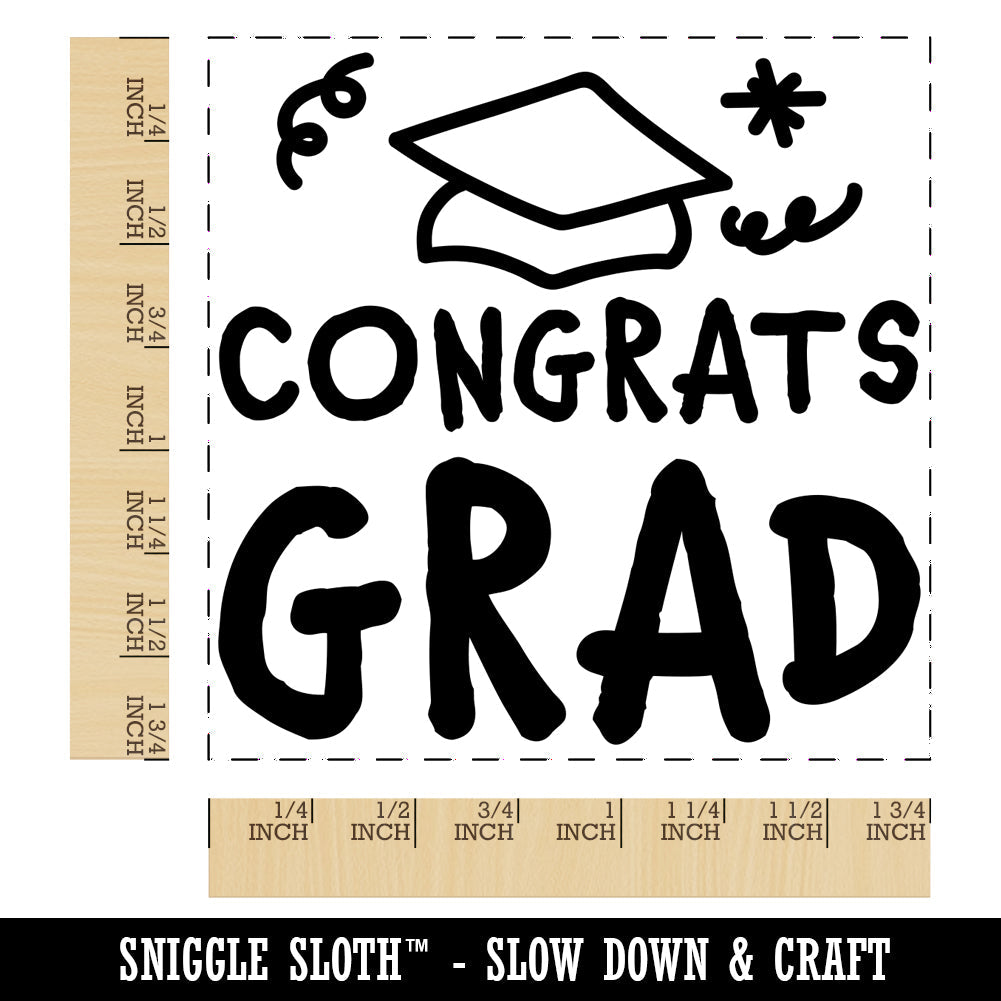 Congrats Grad Graduate Congratulations Square Rubber Stamp for Stamping Crafting