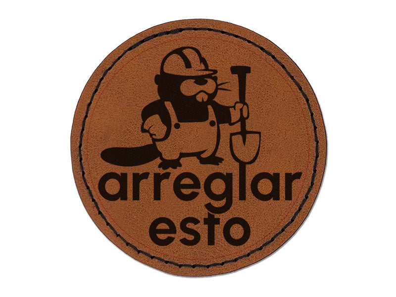 Arreglar Esto Fix This Beaver Spanish Class School Round Iron-On Engraved Faux Leather Patch Applique - 2.5 Inch