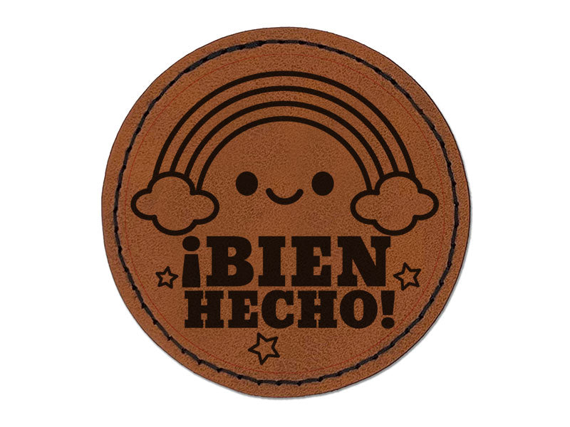 Bien Hecho Rainbow Good Work Spanish Class School Round Iron-On Engraved Faux Leather Patch Applique - 2.5 Inch
