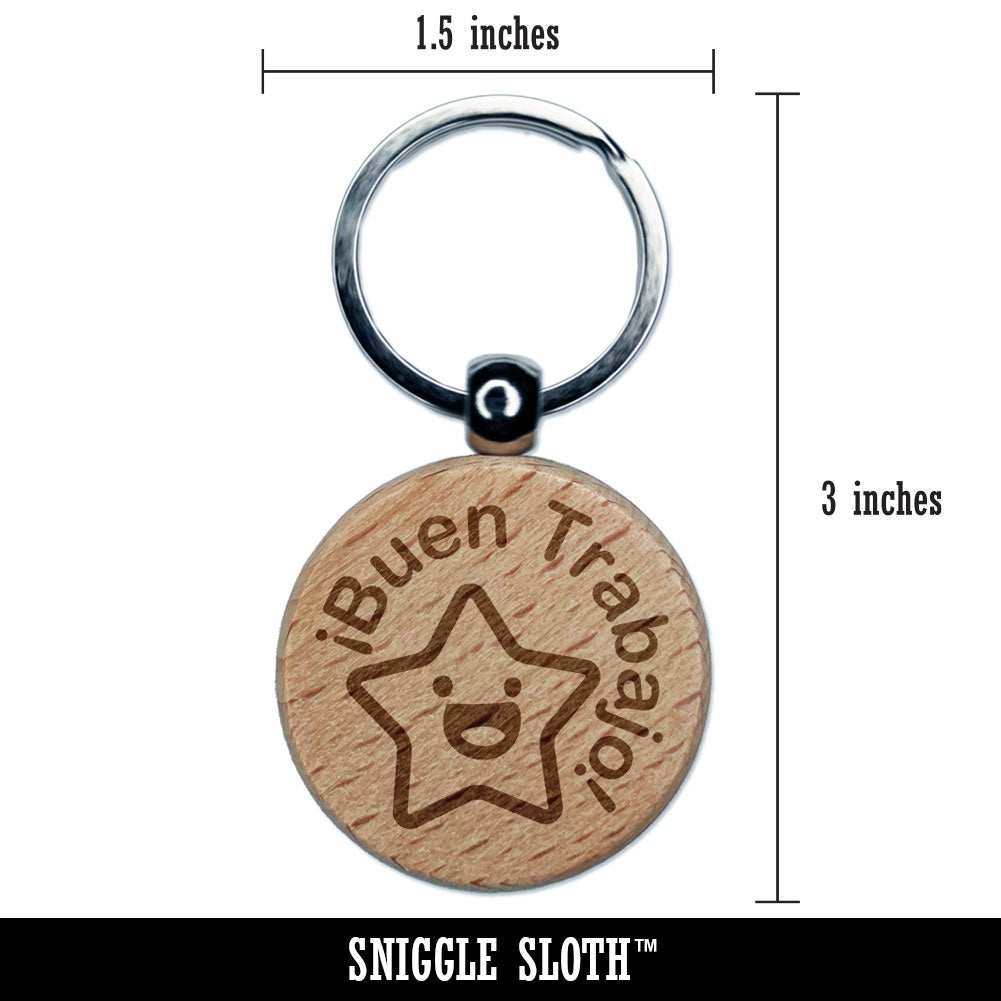 Buen Trabajo Spanish Star Compliment Engraved Wood Round Keychain Tag Charm