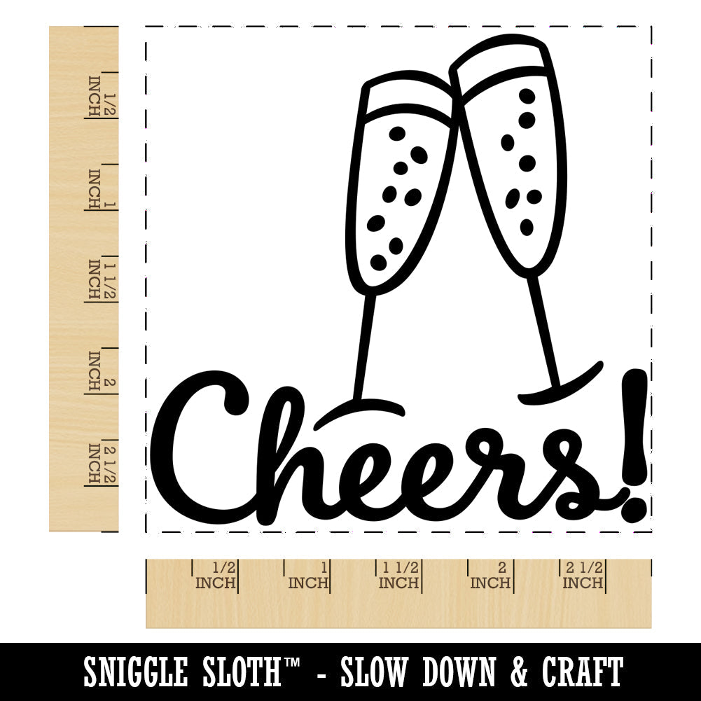 Cheers Champagne Toast Cursive Text Square Rubber Stamp for Stamping Crafting