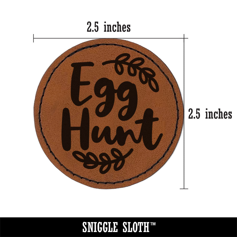 Egg Hunt Easter Sunday Cursive Text with Wreath Round Iron-On Engraved Faux Leather Patch Applique - 2.5 Inch