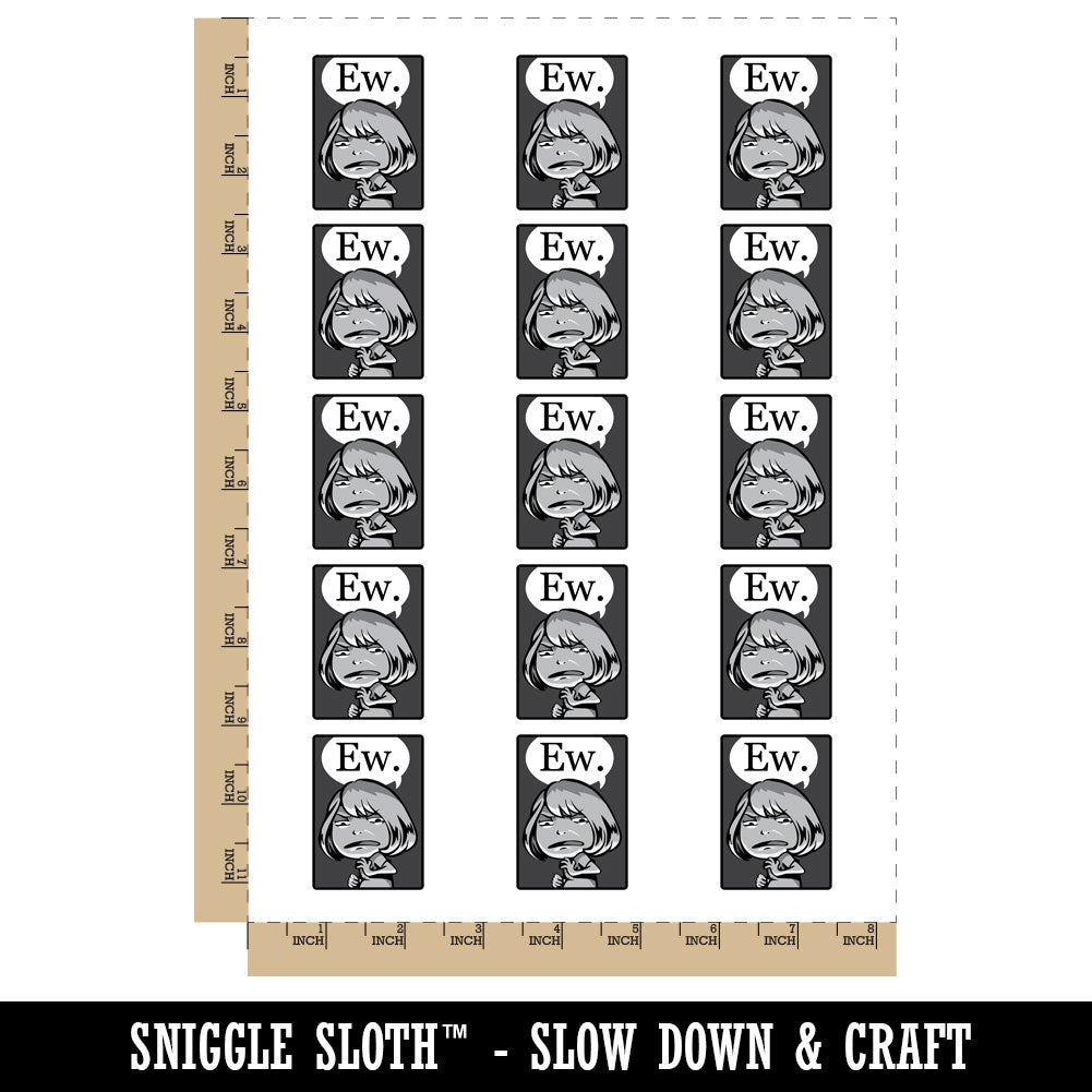 Ew Funny Disgusted Reaction Comic Manga Temporary Tattoo Water Resistant Fake Body Art Set Collection (1 Sheet)