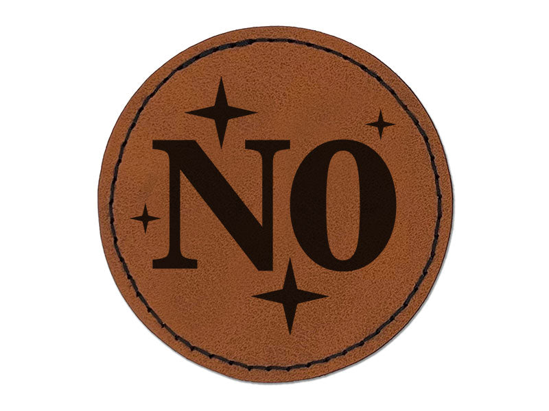Fancy No Sparkle Stars Denied Round Iron-On Engraved Faux Leather Patch Applique - 2.5 Inch