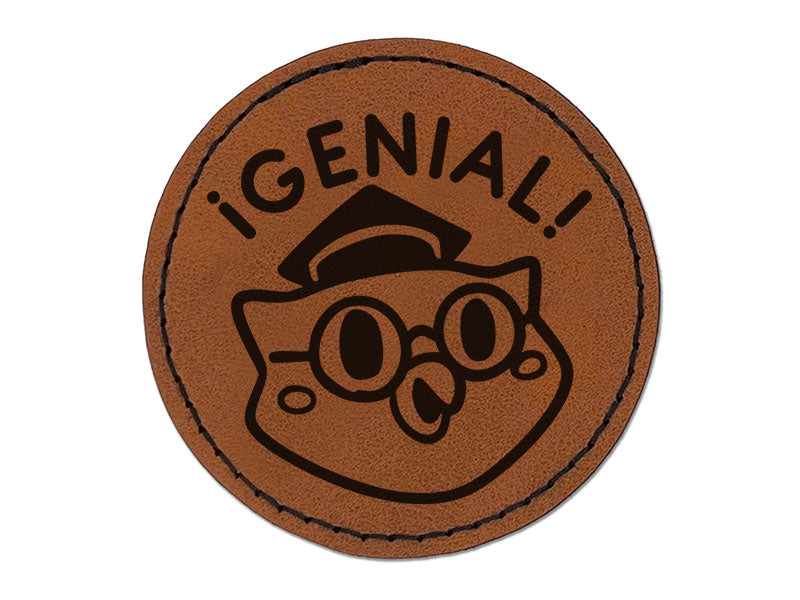Genial Spanish Brilliant Scholar Owl Bird Teacher Stamp Round Iron-On Engraved Faux Leather Patch Applique - 2.5 Inch