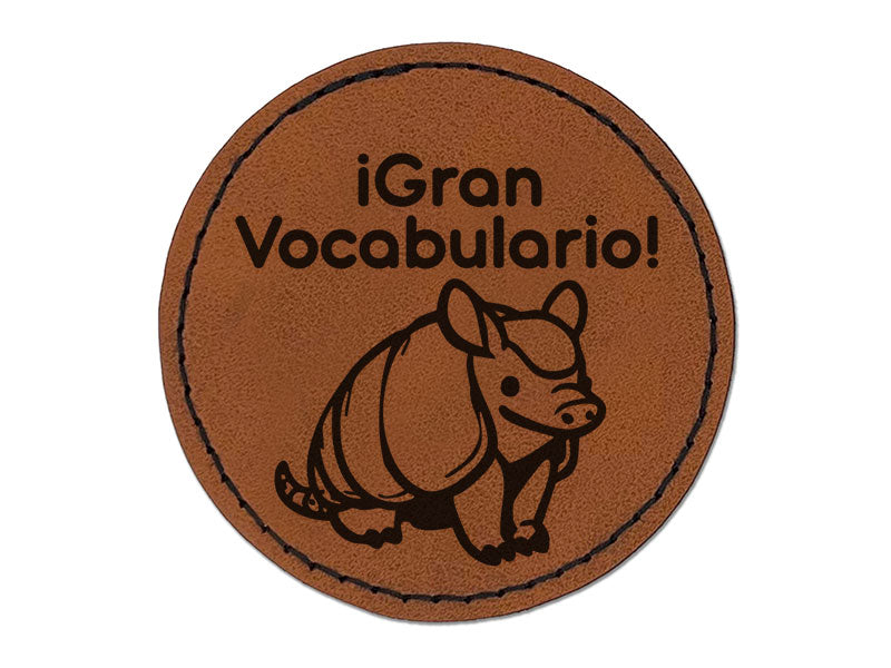 Gran Vocabulario Spanish Great Vocabulary Armadillo Round Iron-On Engraved Faux Leather Patch Applique - 2.5 Inch