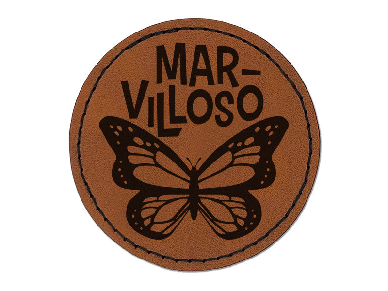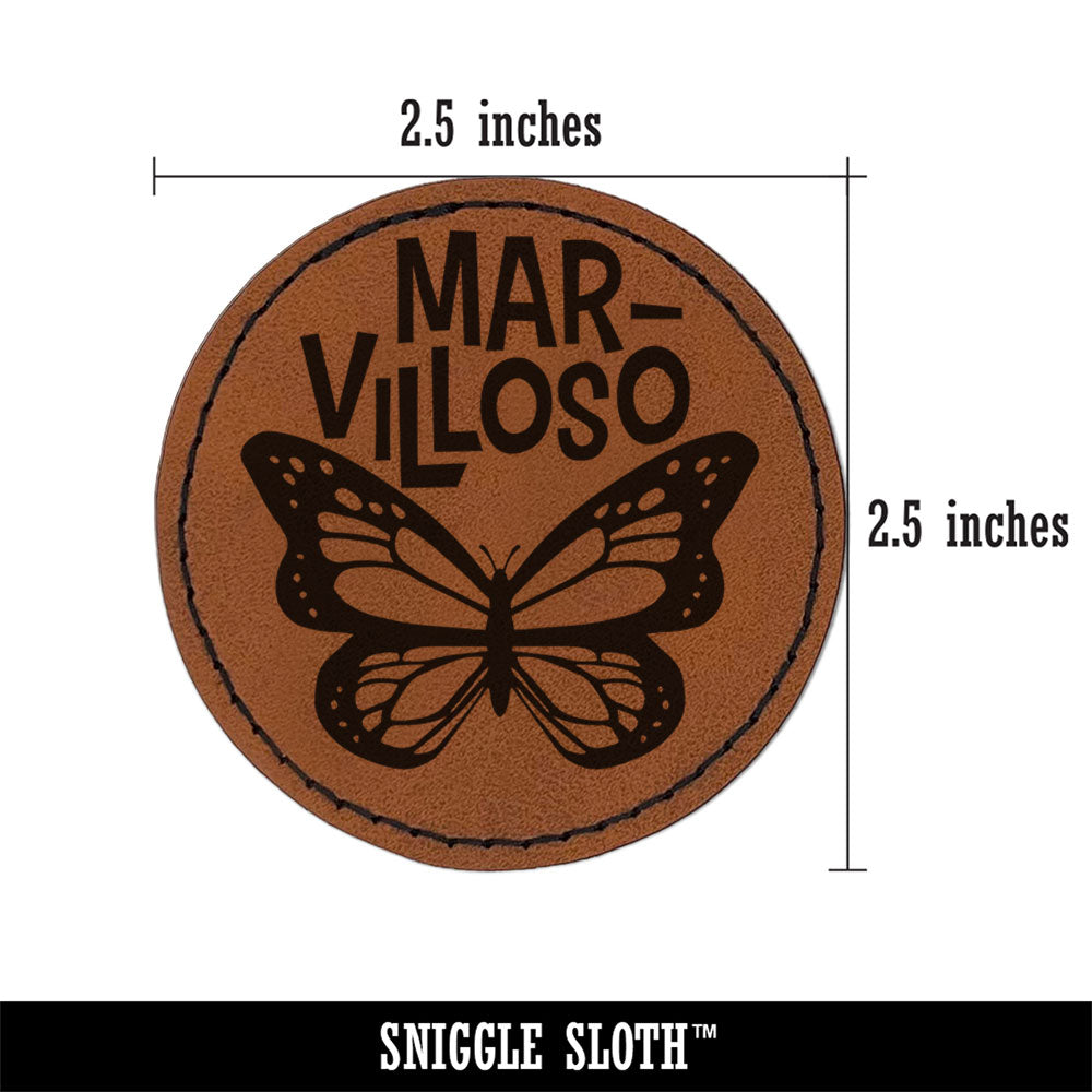 Marvilloso Marvelous Butterfly Spanish Compliment Round Iron-On Engraved Faux Leather Patch Applique - 2.5 Inch