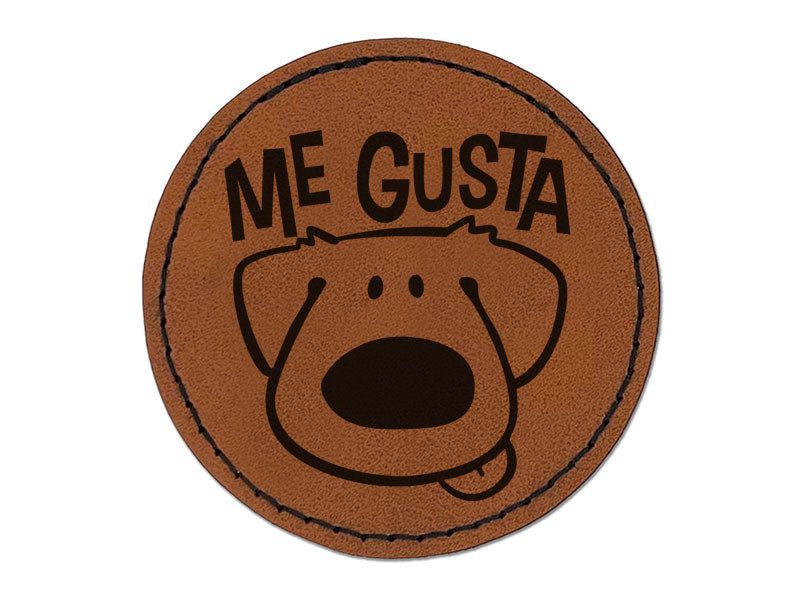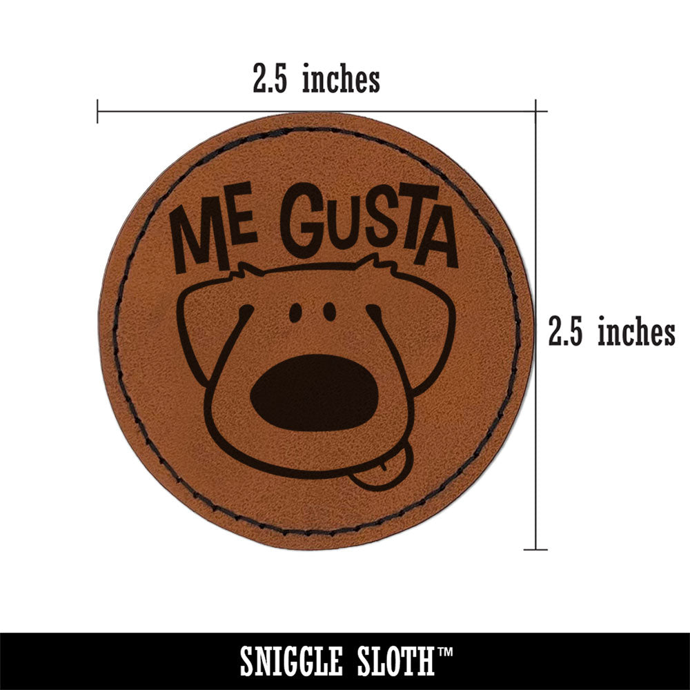 Me Gusta I Like It Spanish Cartoon Dog Teacher Stamp Round Iron-On Engraved Faux Leather Patch Applique - 2.5 Inch