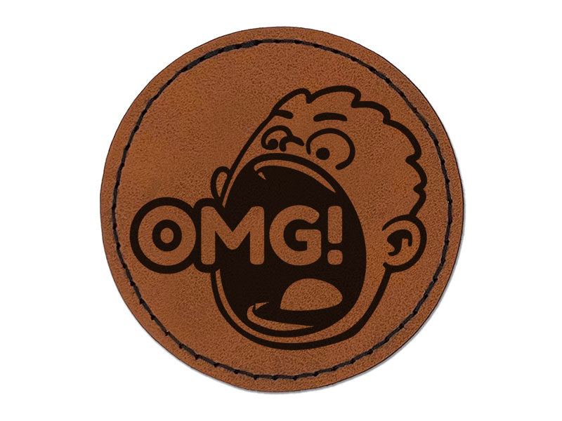 OMG Oh My God Big Mouth Boy Shout Round Iron-On Engraved Faux Leather Patch Applique - 2.5 Inch