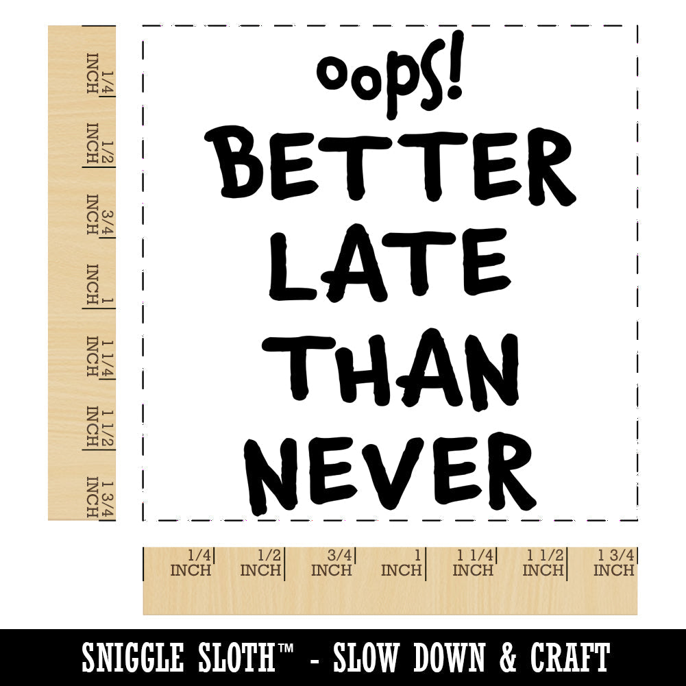 Oops Better Late Than Never Belated Cute Text Square Rubber Stamp for Stamping Crafting