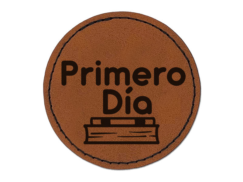 Primero Dia Spanish First Day School Teacher Stamp Round Iron-On Engraved Faux Leather Patch Applique - 2.5 Inch